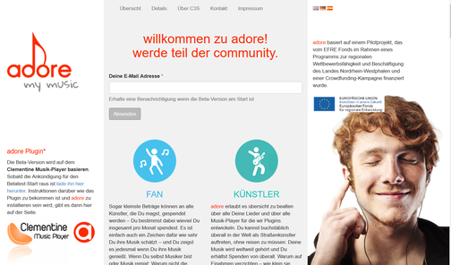 Von 2014 bis 2015 war ich bei der C3S, einer in Gründung befindlichen Verwertungsgesellschaft, mit der Konzeption und Umsetzung eines auf Audio-Fingerprinting basierenden Musik-Micropayment-Systems namens Adore beschäftigt. Schwerpunktmäßig habe ich den Musik-Player Clementine für das Audio-Fingerprinting nachgerüstet und an eine Web-API angebunden. Heute bin ich verantwortlich für die Entwicklung des gesamten Produkts bei der C3S.
