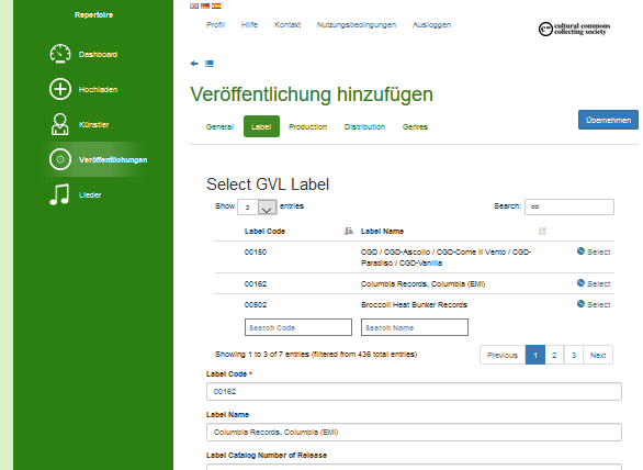 Im Sommer 2018 erledigte ich einige Arbeiten an der Repertoire-Website der Cultural Commons Collecting Society, die Anfang Juni in den Betatest ging.
